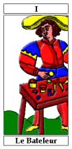 ☆ 放浪者タロットの魔術師は、いかさま賭博師です。ことの性質上、一箇所に長居は出来ません。 カップ三個に赤玉ひとつ、どれに入っているかしら? さあ、張った、張った、張って悪いはオヤジの頭、張らなきゃ食えない提灯屋。適当に射幸心をあおり、適当に儲けさせ、最後はしっかりとイカサマでしめるわけです。 その際に用いられる指先の技術は、まさに超絶技巧と申せましょう。 |