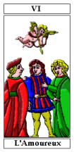 ☆ 放浪者タロットの恋人たちは「色仕掛け」です。男がこうむる古典的災難と申せましょう。 それ風のお姉さんといい感じになり、いざ杯盤狼籍というときに物陰からその筋のお兄さんが登場。あとは自業自得のフルコースですわ。 にもかかわらず、性懲りもなく、虎穴に入らずんばとのバトルクライも勇ましく、男たちは猛進していくのであります。 |