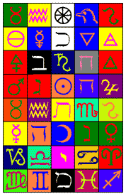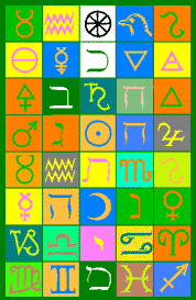地下納骨所の各パーツのうち、もっとも手がかかるのが七側壁である。側壁はそれぞれ惑星に対応しており、固有の色彩を有している。そして一面8フィート×5フィートの壁面に適当な大きさで四十区画を設け、区画別に象徴を描くわけだが、その際に本来的配属色プラス惑星色の混合色を用いることになる。