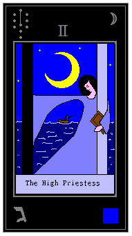 カードの意味 : 叡智、知恵、賢い、冷静、ときに冷酷、寒色系の女性、クール。海、月、夜、銀。孤高。ヴェールに覆われた神秘。