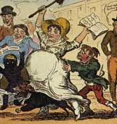 下はジョアンナを戯画化した当時のイラスト。足元の犬に注目のこと。